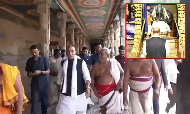 இந்த நிலையில், மதுரை மீனாட்சி அம்மன் கோவிலில் மத்திய மந்திரி ராஜ்நாத் சிங் இன்று சாமி தரிசனம் செய்தார். கோவில் நிர்வாகம் சார்பில் மத்திய மந்திரி ராஜ்நாத் சிங்கிற்கு பூரண கும்ப மரியாதை அளிக்கப்பட்டது. முக்குறுணி விநாயகர், சுந்தரேசுவரர் சன்னதிகளுக்கு சென்று ராஜ்நாத் சிங் தரிசனம் செய்தார்.