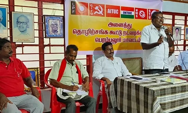 மத்திய-மாநில தொழிற்சங்கங்களின் பெரம்பலூர் மாவட்ட மாநாடு துறைமங்கலத்தில் நேற்று நடந்தது. மாநாட்டிற்கு மாவட்ட செயலாளர்கள் ரெங்கசாமி (தொ.மு.ச.) (கவுன்சில்), அகஸ்டின் (சி.ஐ.டி.யு.), மாலிக்பாட்ஷா (எஸ்.டி.யு.), மாவட்ட நிவாகிகள் ராஜேந்திரன் (ஏ.ஐ.டி.யு.சி.), நீலமேகம் (எச்.எம்.எஸ்.), ஆகியோர் கூட்டாக தலைமை தாங்கினர். சுதந்திர தொழிலாளர் யூனியன் சங்க பொதுச் செயலாளர் சையத் அலி, சி.ஐ.டி.யு. மாநில துணை தலைவர் கருப்பையன் ஆகியோர் மத்திய அரசின் தொழிலாளர், மக்கள், விவசாய விரோத கொள்கைகளை விளக்கமாக பேசினர். தொழிலாளர் சட்ட தொகுப்புகள் நான்கையும் கைவிட வேண்டும். மின்சார திருத்த சட்டத்தை திரும்ப பெற வேண்டும். பொதுத்துறை நிறுவனங்களை தனியார் மயமாக்க கூடாது. வருமான வரி செலுத்தும் அளவுக்கு வருவாய் இல்லாத குடும்பங்களுக்கு மாதம் ரூ.7 ஆயிரத்து 500 வழங்க வேண்டும். மகாத்மா காந்தி தேசிய ஊரக வேலை உறுதி திட்டத்துக்கு (100 நாள் வேலை) நிதி ஒதுக்கீட்டை அதிகப்படுத்த வேண்டும். இந்த திட்டத்தை நகரங்களுக்கும் விரிவுபடுத்த வேண்டும். அரசு துறைகளில் ஒப்பந்த முறையை முற்றிலும் ஒழிக்க வேண்டும்.பெட்ரோலிய பொருட்களுக்கு மீதான கலால் வரியை குறைத்து அனைத்து பொருட்களின் விலையேற்றத்தை கட்டுப்படுத்த வேண்டும். பழைய ஓய்வூதிய திட்டத்தை செயல்படுத்த வேண்டும். தொழிலாளர் வருங்கால வைப்பு நிதிக்கு குறைந்தபட்ச ஓய்வூதியத்தை கூடுதலாக்கிட வேண்டும் என்பது உள்ளிட்ட பல்வேறு கோரிக்கைகளை நிறைவேற்ற மத்திய அரசை வலியுறுத்தி சென்னையில் வருகிற 9-ந்தேதி மத்திய-மாநில தொழிற்சங்கங்கள் சார்பில் பெருந்திரள் அமர்வு நடைபெறவுள்ளது. அதற்கான மக்கள் சந்திப்பு, தெருமுனை பிரசாரம் வருகிற 5, 6-ந்தேதிகளில்பெரம்பலூர் மாவட்டம் முழுவதும் தொழிற்சங்கங்கள் சார்பில் நடத்தப்படவுள்ளதாக மாவட்ட மாநாட்டில் முடிவு எடுக்கப்பட்டது.