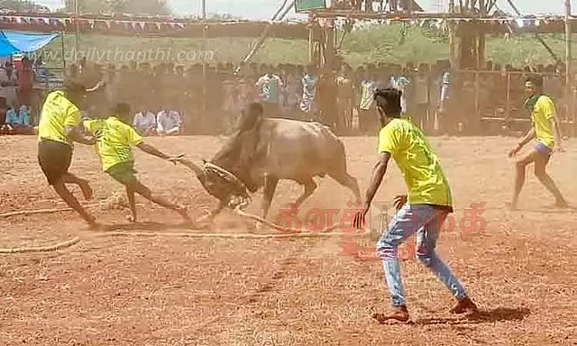 மதுரை மாவட்டம் பாலமேடு அருகே உள்ள 66.எம்.பள்ளபட்டி கிராமத்தில் ஸ்ரீமுத்தாலம்மன் கோவில் திருவிழாவையொட்டி வடமஞ்சுவிரட்டு போட்டி நேற்று நடைபெற்றது. இதில் பல்வேறு மாவட்டங்களை சேர்ந்த 12 காளைகளும் 100-க்கும் மேற்பட்டமாடுபிடி வீரர்களும் கலந்து கொண்டனர். ஒரு காளைக்கு 9 வீரர்கள் வீதம் 25 நிமிடங்கள் போட்டியில் பங்கேற்றனர். மொத்தம் 12 சுற்றுகளாக 12 காளைகள் மைதானத்தில் இறங்கியது. இதில் காளைகளை பிடித்த வீரர்களுக்கும், பிடிபடாத காளைகளுக்கும் அண்டா, கட்டில், குத்து விளக்கு, ரொக்க பணம் உள்ளிட்ட பல்வேறு பரிசுகள் வழங்கப்பட்டது. இதில் மாடு முட்டியதில் 17 வீரர்களுக்கு காயம் ஏற்பட்டது. பாதுகாப்பு ஏற்பாடுகளை பாலமேடு போலீசார் செய்திருந்தனர். இந்த போட்டியை காண சுற்றுவட்டாரங்களை சேர்ந்த ஏராளமானவர்கள் வந்து இருந்தனர்.