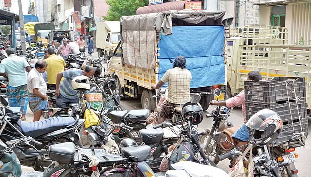 இந்த கடைகளுக்கு கும்பகோணம், திருவாரூர், காரைக்கால், மயிலாடுதுறை உள்ளிட்ட பகுதிகளில் இருந்து மொத்த வியாபாரிகள் லாரிகள் மூலம் பொருட்களை ஏற்றி வந்து கடைகளுக்கு வினியோகம் செய்கின்றனர். அவ்வாறு பொருட்களை ஏற்றி வரும் லாரிகள் கடைகளின் வாசலில் நெடுஞ்சாலையில் நிறுத்தி பொருட்களை இறக்குகின்றனர். ஏற்கனவே குறுகலாக உள்ள இந்த பகுதி சாலையில் போக்குவரத்துக்கு இடையூறாக வாகனங்கள் நிறுத்தப்படுவதால் அவசர அவசரமாக செல்லும் ஆம்புலன்ஸ் கூட போக்குவரத்து நெருக்கடியில் சிக்கி கொள்கிறது.