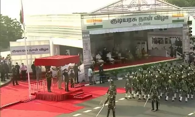 காமராஜா சாலையிலேயே அருகில் மற்றொரு இடத்தில் குடியரசு தின விழாவை நடத்தலாம் என்று அரசு ஆலோசித்து வருகிறது. தற்போது 2 இடங்களை அரசு பரிசீலித்து வருகிறது. அதன்படி, உழைப்பாளா சிலை முன்பாக அல்லது விவேகானந்தா இல்லம் முன்பாக மேடை அமைத்து குடியரசு தின விழாவை நடத்த தமிழக அரசு திட்டமிட்டுள்ளது.