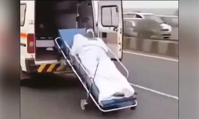 இந்த நிலையில் சமூக வலைத்தளத்தில் கடந்த சில நாட்களாக ஒரு வீடியோ வைரலாகி உள்ளது. அதில் ஆம்புலன்ஸ் ஒன்று ரோட்டில் செல்வது போன்றும், அதன் பின்புறத்தில் உள்ள கதவு தானாக திறப்பது போன்றும், அதில் இருந்து நோயாளி ஸ்டெச்சரோடு ரோட்டில் விழுவது போன்றும் இருக்கிறது.