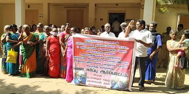கோவில்பட்டி உதவி கலெக்டர் அலுவலகம் முன்பு நடராஜபுரம், பசும்பொன் நகர் பகுதி மக்கள் நேற்று காலையில் கோரிக்களை வலியுறுத்தி ஆர்ப்பாட்டம் நடத்தினர்.