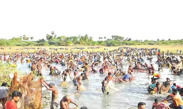 இந்த நிலையில் கண்மாயில் மீன்பிடி திருவிழா நடத்த கிராம முக்கியஸ்தர்கள் சார்பில் முடிவெடுக்கப்பட்டது. நேற்று காலை முதலே சுற்றுவட்டார பகுதியை சேர்ந்த சிறுவர்கள் முதல் பெரியோர் வரை ஏராளமானோர் கண்மாயை சுற்றிலும் காத்திருந்தனர்.