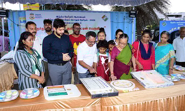 இதன் தொடர்ச்சியாக, சென்னை மாவட்டத்தில் 100% வாக்களிப்பதன் அவசியம் குறித்து வாக்காளர்களுக்கு விழிப்புணர்வு ஏற்படுத்தும் வகையில் மின்னணு வாக்குப்பதிவு இயந்திரம், 100% வாக்குப்பதிவு, ஓட்டுப்பதிவிற்கான மை வைக்கப்பட்ட விரல் வடிவம் உள்ளிட்ட பல்வேறு வடிவங்களில் உருவாக்கப்பட்ட இட்லி விழிப்புணர்வு கண்காட்சியினை கூடுதல் மாவட்ட தேர்தல் அலுவலர்/வடக்கு வட்டார துணை ஆணையாளர் கட்டா ரவி தேஜா, இன்று (17.04.2026) மெரினா கடற்கரை, விவேகானந்தர் இல்லம் எதிரில் தொடங்கி வைத்துப் பார்வையிட்டு, மக்களிடம் தேர்தல் விழிப்புணர்வு துண்டுப்பிரசுரங்களை வழங்கி 100 சதவீதம் வாக்களித்திட கேட்டுக்கொண்டார். இந்தக் கண்காட்சியினை பொது மக்கள் ஆர்வமுடன் பார்வையிட்டனர்.