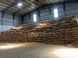 தஞ்சை மண்டல தமிழ்நாடு நுகர்பொருள் வாணிபக்கழகத்துக்கு உட்பட்ட பகுதியில் கான்கிரீட் தளம், மேற்கூரையுடன் கூடிய நெல் சேமிப்பு கிடங்குகள் கட்ட ரூ.35.25 கோடி ஒதுக்கீடு செய்யப்பட்டது. அதன்படி தஞ்சையை அடுத்த பிள்ளையார்பட்டியில் 50 ஆயிரம் டன், சென்னம்பட்டியில் 2 ஆயிரத்து 500 டன், பட்டுக்கோட்டையை அடுத்த திட்டக்குடியில் 6 ஆயிரம் டன் என மொத்தம் 58 ஆயிரம் டன் கொள்ளவு கொண்ட சேமிப்பு கிடங்குகள் கட்டும் பணிகள் நடந்து வந்தன.