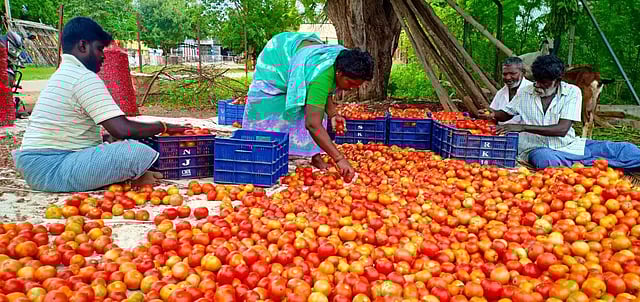 உப்புக்கோட்டையை சேர்ந்த விவசாயி பாண்டி கூறும்போது, 'நான் தக்காளி சாகுபடி செய்து வருகிறேன். தற்போது 12 கிலோ கொண்ட ஒரு பெட்டி தக்காளி ரூ.70 முதல் ரூ.100 வரை விற்பனை செய்யப்படுகிறது. அதில் வண்டி வாடகை, பெட்டி வாடகை, மார்க்கெட் ஏலம் கமிஷன் போக, ஒரு கிலோவுக்கு ரூ.3 முதல் ரூ.4 வரை தான் கிடைக்கிறது. அது சாகுபடி செலவுக்கு கூட போதுமானதாக இல்லை. விலை உயர்வாக இருக்கும் போது வெளி மாநிலங்களில் இருந்து தக்காளி இறக்குமதி செய்யப்படுகின்றன. அதுபோல், விலை வீழ்ச்சி அடையும் போது விலை கிடைக்கும் மாவட்டங்களுக்கு இங்கிருந்து அனுப்பி வைக்க ஏற்பாடு செய்ய வேண்டும். தக்காளியில் இருந்து மதிப்புக்கூட்டப்பட்ட பொருட்கள் தயாரிப்புக்கான தொழிற்கூடங்களை தேனி மாவட்டத்தில் அரசு உருவாக்க வேண்டும்' என்றார்.