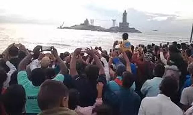 இந்த நிலையில், வார விடுமுறையான இன்று கன்னியாகுமரிக்கு ஏராளமான சுற்றுலா பயணிகள் வந்தனர். அவர்கள் அதிகாலையில் முக்கடலும் சங்கமிக்கும் திரிவேணி சங்கமம் கடற்கரையில் சூரிய உதயம் காண குவிந்தனர். அங்கு சூரியன் உதய காட்சியை கண்டு ரசித்தனர். தொடர்ந்து கன்னியாகுமரி பகவதி அம்மன் கோவிலில் நீண்ட வரிசையில் காத்திருந்து சாமி தரிசனம் செய்து வருகின்றனர்.