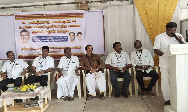 அரியலூர் மாவட்ட தமிழ்நாடு வெல்டிங் உரிமையாளர் முன்னேற்ற சங்கத்தின் செயற்குழு கூட்டம், சங்க கொடியேற்றம், தொழிலாளர் அடையாள அட்டை வழங்குதல் ஆகிய முப்பெரும் விழா ஜெயங்கொண்டத்தில் உள்ள ஒரு தனியார் கூட்டரங்கில் நடைபெற்றது. கூட்டத்திற்கு அரியலூர் மாவட்ட கவுரவத் தலைவர் சண்முகம் தலைமை தாங்கினார். அரியலூர் மாவட்ட தலைவர் முரளிதரன் முன்னிலை வகித்து பேசினார். முன்னதாக அரியலூர் மாவட்ட செயலாளர் கொளஞ்சியப்பா வரவேற்று பேசினார். கூட்டத்தில் மாநிலத் தலைவர் வெங்கடேசன் சங்க செயல்பாடு மற்றும் வளர்ச்சி குறித்து சிறப்புரையாற்றினார். தொடர்ந்து ஜெயங்கொண்டம், ஆண்டிமடம், உடையார்பாளையம், தா.பழூர், மீன்சுருட்டி உள்ளிட்ட சுற்று வட்டார பகுதியில் சங்க கொடியினை ஏற்றி வைத்தார். இதில் மாநிலச் செயலாளர் பாலாஜி, மாநில பொருளாளர் மோகன் ஆகியோர் கலந்து கொண்டு நிர்வாகிகளுக்கு சங்க அடையாள அட்டையை வழங்கினர். கூட்டத்தில் மின் கட்டணம் உயர்வை கட்டுப்படுத்த வேண்டும். இரும்பு விலையை குறைக்க வேண்டும் என்பன உள்ளிட்ட பல்வேறு கோரிக்கைகள் தீர்மானமாக நிறைவேற்றப்பட்டன. இதில் ஜெயங்கொண்டம், தா.பழூர், ஆண்டிமடம், உடையார்பாளையம், மீன்சுருட்டி உள்ளிட்ட பல்வேறு பகுதிகளில் இருந்து 300-க்கும் மேற்பட்ட வெல்டிங் பட்டறை உரிமையாளர்கள் கலந்து கொண்டனர். முடிவில் மாவட்ட பொருளாளர் சங்கர் நன்றி கூறினார்.