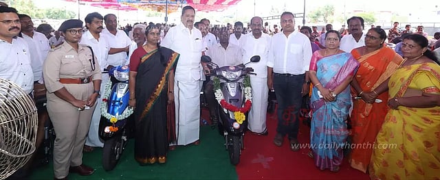 ராணிப்பேட்டை அரசினர் ஆண்கள் மேல்நிலைப்பள்ளி விளையாட்டு மைதானத்தில் மாற்றுத்திறனாளி நலத்துறை சார்பில் மாற்றுத்திறனாளிகளுக்கு இணைப்புச் சக்கரங்கள் பொருத்தப்பட்ட பெட்ரோல் ஸ்கூட்டர். மோட்டார் பொருந்திய தையல் எந்திரம், தக்க செயலிகளுடன் கூடிய திறன்பேசி, மூன்று சக்கர சைக்கிள், பேட்டரியால் இயங்கக்கூடிய சிறப்பு சக்கர நாற்காலி, சக்கர நாற்காலி, காதொலிக் கருவிகள், முதல்-அமைச்சரின் விரிவான மருத்துவ காப்பீடு திட்டத்தின் கீழ் செயற்கை அவயங்கள், வங்கிக் கடன் மானியம் உள்ளிட்ட அரசு நலத்திட்ட உதவிகள் வழங்கும் விழா நடைபெற்றது.