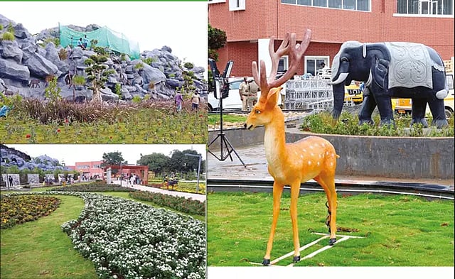 நீர்த் தோட்டம், பாலைவனத் தோட்டம், மூங்கில் தோட்டம், ரோஜா தோட்டம் என 23 விதமான தோட்டங்கள். 453 கார்கள், 10 பேருந்துகள், 1000 இருசக்கர வாகங்கள் நிறுத்தும் வசதி செய்யப்பட்டுள்ளது. ஜெர்மன் தொழில்நுட்பத்தில் 2 கி.மீ. நீளத்திற்கு மழை நீர் சேகரிப்பு வடிகால் அமைக்கப்பட்டுள்ளது.