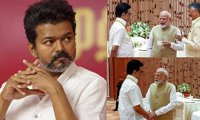 அந்தப் புகைப்படத்தில், பா.ஜ.க.வுடன் வெளிப்படையான கூட்டணியில் இருக்கும் ஆந்திர முதல்-மந்திரி சந்திரபாபு நாயுடு அவர்கள் ஒருபுறம் முன்வரிசையில் நிற்கிறார். அதே முன்வரிசையில் இன்னொரு புறம், தமிழ்நாட்டின் தற்போதைய முதல்-அமைச்சர் மு.க.ஸ்டாலின் அவர்கள் நிற்கிறார். இதற்கு என்ன பொருள்? ஒருவருக்கு வெளிப்படைக் கூட்டணி என்பதால் முன்வரிசை. இன்னொருவருக்கு மறைமுகக் கூட்டணி என்பதால் முன்வரிசை. இதுதானே உண்மை?