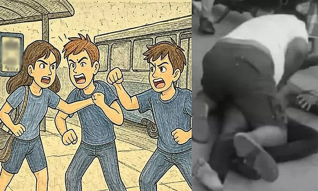 தனது மனைவி முன்னாள் காதலனுடன் பஸ் ஏற வந்து இருப்பதை கண்டு ஐ.டி.ஊழியர் அதிர்ச்சி அடைந்தார். இதுபற்றி அவர் தனது மனைவியிடம் கேட்டு தகராறில் ஈடுபட்டார். மேலும் உடனடியாக 'வீட்டுக்கு வா' என்று கூறி மனைவியின் கையை பிடித்து இழுத்தார். இதனை கண்ட இளம் பெண்ணின் முன்னாள் காதலன் ஆவேசம் அடைந்து ஐ.டி. ஊழியரை சரமாரியாக தாக்கி கட்டிப்புரண்டனர். அப்போது கணவரை இளம் பெண்ணும் சேர்ந்து தாக்கினார். இதனால் அங்கு பரபரப்பு ஏற்பட்டது.