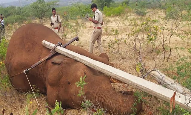 அதில் இருந்து சுதாரித்து எழுவதற்குள் மின்கம்பத்தில் இருந்த மின்வயர்கள் யானையின் மீது பட்டது. இதனால் மின்சாரம் தாக்கியதில் அந்த யானை பரிதாபமாக இறந்து இருக்கலாம் என்று தெரிவித்தனர். இதையடுத்து சம்பவ இடத்திற்கு வந்த வனத்துறை டாக்டர், யானையின் உடலை பரிசோதனை செய்தார். அதைத் தொடர்ந்து யானையின் உடல் வனப் பகுதிக்குள் அடக்கம் செய்யப்பட்டது.