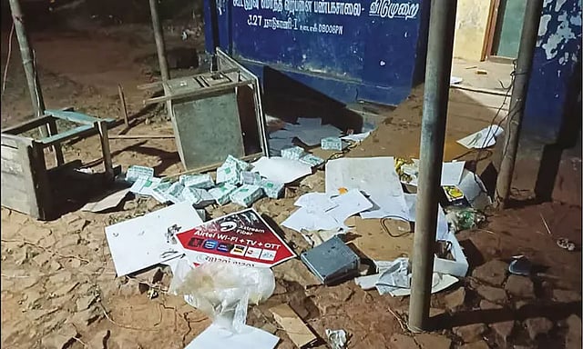 பொங்கல் பரிசுத்தொகுப்பு வழங்குவதற்காக கரும்பு கட்டுகள் ரேஷன் கடைக்குள் வைக்கப்பட்டு இருந்தது. இந்த நிலையில், நேற்று இரவு அப்பகுதிக்கு வந்த காட்டு யானைகள் ரேஷன் கடையின் கதவை உடைத்து, உள்ளே இருந்த பதிவேடுகள், விற்பனை முனைய எந்திரத்தை வெளியே தூக்கி வீசி உடைத்து சேதப்படுத்தியது. அதோடு அங்கிருந்த அத்தியாவசிய பொருட்களை தின்றன.