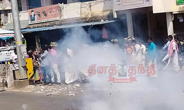 இவ்வாறு சீர் வரிசை எடுத்து செல்வோர் கூட்டமாக சாலையில் நின்று கொண்டு, அதே சாலையில் பலத்த சத்தத்தை கிளப்பும் நாட்டு வெடிகள் மற்றும் பட்டாசுகளை அதிகளவில் வெடிக்கின்றனர். இவ்வாறு அத்துமீறி வெடி வெடிக்கப்படுவதால், இந்த வழியே வாகனங்களில் செல்லும் பொதுமக்கள் இச்சாலையை கடந்து செல்ல முடியாமல் திணறி நிற்கிறார்கள். மேலும் திடீரென பிரதான சாலையில் நாட்டு வெடிகளும், பட்டாசுகளும் வெடிக்கப்படுவதால் விபத்துகள் ஏற்படும் ஆபத்தும் உள்ளது. மேலும் வெடிகள் வெடிக்கும் போது போக்குவரத்துக்கு இடையூறு ஏற்படுகிறது.