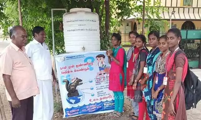 புதிய குடிநீர் தொட்டி வைக்கப்பட்டு மாணவிகளுக்கு தண்ணீர் வழங்கப்பட்டது.