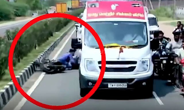 இந்நிலையில், விஜய் இன்று காலை பிரசார வாகனத்தில் காரைக்குடிக்கு சென்றுகொண்டிருந்தார். அவரின் பிரசார வாகனத்தை அவரது தொண்டர்கள், ரசிகர்கள் என பலரும் பின் தொடர்ந்து பைக்கில் சென்றுகொண்டிருந்தனர்.