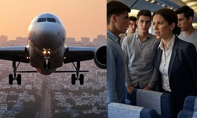 இதனால் அந்த வாலிபர்கள், ஆபாசமான வார்த்தைகளால் பெண் தொழில் அதிபரை திட்டியதுடன், அவரிடம் ரகளை செய்ததாக கூறப்படுகிறது. இதனால் அவர், விமான பணிப்பெண்களிடம் புகார் செய்தார். அவர்கள், அந்த வாலிபர்களிடம் அமைதியாக இருக்கும்படி கூறினர். ஆனாலும் அவர்கள் தொடர்ந்து கூச்சல் போட்டு ஆபாசமாக பேசி ரகளை செய்ததாக கூறப்படுகிறது.