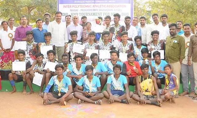 நாகப்பட்டினம், புதுச்சேரி மண்டலத்தில் உள்ள பாலிடெக்னிக் கல்லூரிகள் கலந்து கொண்ட 2023-ம் ஆண்டுக்கான கோ-கோ விளையாட்டு போட்டிகள் உளுந்தூர்பேட்டை அருகே உள்ள ஐவதுகுடி ஸ்ரீ அய்யப்பா பாலிடெக்னிக் கல்லூரி வளாகத்தில் நடைபெற்றது. போட்டியில் ஏராளமான பாலிடெக்னிக் கல்லூரிகளை சேர்ந்த அணிகள் கலந்துகொண்டு விளையாடின. இதில் புதுச்சேரி மோதிலால் நேரு அரசு பாலிடெக்னிக் கல்லூரி முதல் பரிசையும், உளுந்தூர்பேட்டை அய்யப்பா பாலிடெக்னிக் கல்லூரி 2-வது பரிசையும், ஶ்ரீ அய்யப்பா பாலிடெக்னிக் கல்லூரி 3-வது பரிசையும் தட்டிச்சென்றது. வெற்றி பெற்ற அணிகளுக்கு ஶ்ரீ அய்யப்பா பாலிடெக்னிக் கல்லூரி முதல்வர் டாக்டர் புனிதவதி மோகன் சான்றிதழ் மற்றும் கேடயங்களை வழங்கினார். இதில் அய்யப்பா பாலிடெக்னிக் கல்லூரி முதல்வர் கமால் பாஷா, உடற்கல்வி இயக்குனர் பன்னீர் செல்வம் உள்பட பலர் கலந்து கொண்டனர்.