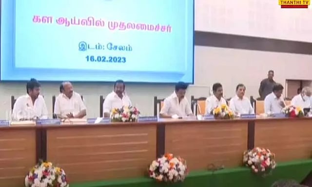 இந்த நிலையில், கள ஆய்வின் இரண்டாம் நாளான இன்று முதல் அமைச்சர் திட்டத்தின் கீழ் சேலம் மண்டலத்திற்கு உட்பட்ட 4 மாவட்ட ஆட்சியர்களுடன் முதல் அமைச்சர் மு.க.ஸ்டாலின் ஆலோசனை நடத்தி வருகிறார்.