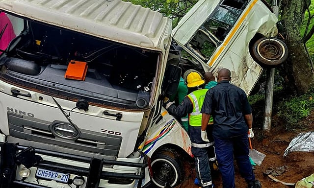 தென்னாப்பிரிக்காவின் டர்பன் மாகாண நெடுஞ்சாலையில் ஒரு மினிவேன் சென்று கொண்டிருந்தது. இதில் பெண்கள், குழந்தைகள் உள்பட சுமார் 30 பேர் பயணித்தனர். குவாசுலு-நடால் என்ற இடத்துக்கு அருகே கட்டுப்பாட்டை இழந்த மினிவேன் முன்னால் சென்ற காரில் உரசியது.