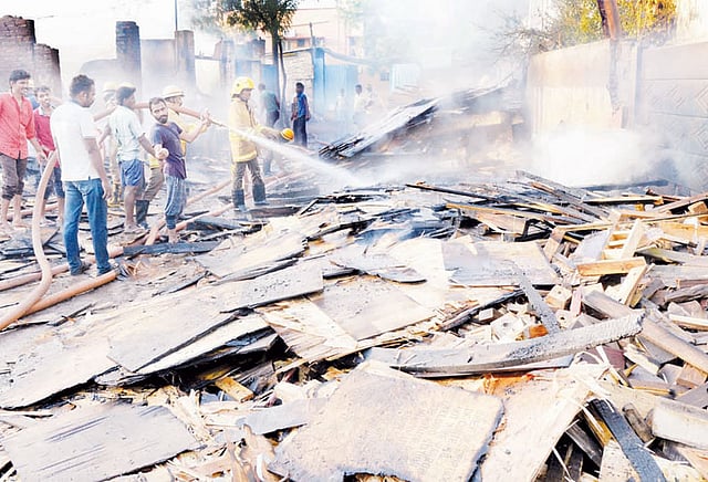 திருச்சி சங்கிலியாண்டபுரம் மணல்வாரி துறை சாலையில் சேகர் என்பவருக்கு சொந்தமான மரப்பட்டறை உள்ளது. இங்கு கட்டில், நாற்காலி உள்ளிட்டவற்றை செய்தது போக மீதம் உள்ள மரங்கள், பலகைகள் ஏராளமாக அடுக்கி வைக்கப்பட்டு இருந்தன. மரப்பெட்டி செய்பவர்கள் இதனை வாங்கி செல்வது வழக்கம். நேற்று மாலை 4 மணி அளவில் இந்த மரப்பட்டறையில் திடீரென தீ பிடித்து எரிந்தது. இதுபற்றி தகவல் அறிந்த தீயணைப்பு படைவீரர்கள் 4 வாகனங்களில் அங்கு விரைந்து வந்து தண்ணீரை பீய்ச்சி அடித்து தீயை அணைக்க முயன்றனர். தீயணைப்பு படையினருக்கு உதவியாக மாநகராட்சி குடிநீர் லாரிகள் தண்ணீரை வினியோகம் செய்தன. சுமார் ஒரு மணி நேர போராட்டத்துக்கு பின்னர் தீ கட்டுப்படுத்தப்பட்டது. ஆனாலும், அங்கு அடுக்கி வைக்கப்பட்டு இருந்த பல லட்சம் ரூபாய் மதிப்புள்ள பலகைகள் எரிந்து நாசமாகின. மரப்பட்டறையில் எதனால் தீ பிடித்தது என தெரியவில்லை. பாலக்கரை போலீசார் இதுபற்றி வழக்குப்பதிவு செய்து விசாரணை நடத்தி வருகிறார்கள். தீயணைப்பு படையினர் சரியான நேரத்திற்கு வந்து தீயை அணைத்ததால் அந்த பகுதியில் இருந்த மற்ற கடைகள் மற்றும் வீடுகள் தீ விபத்தில் இருந்து தப்பின.
