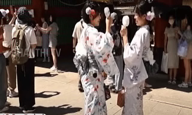 சென்சோஜி கோவிலில் சாலையில் வைக்கப்பட்டிருந்த ஏர்கூலரில் காற்றுவாங்கி வெயில் தாக்கத்தை தணித்துக் கொண்டனர். இப்படியே போனால் என்ன செய்வது எனக் குமுறும் அவர்கள்.. எப்படியாவது பருவ நிலை மாற்றத்தில் கவனம் செலுத்துங்கள் என உலக நாடுகளை கேட்கிறார்கள்