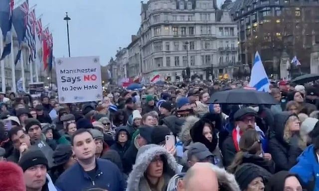 இந்த போரின் ஒரு பகுதியாக, யூதர்களுக்கு எதிரான பகைமை ஒருபுறம் அதிகரித்து வருகிறது. யூத எதிர்ப்பு, விமர்சனங்கள் மற்றும் வெறுப்பு பேச்சுகளும் சமூக வலைதளங்களில் வெளிவந்தன. இந்த விவகாரத்தில் யூதர்களுக்கு எதிரான வேற்றுமைக்கு எதிர்ப்பு தெரிவித்து, லண்டனில் 1 லட்சம் பேர் பேரணியாக சென்றனர். இந்த பேரணியில் இங்கிலாந்தின் முன்னாள் பிரதமர் போரிஸ் ஜான்சனும் கலந்து கொண்டார்.