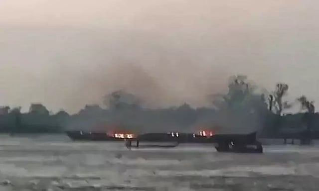 பண்டமா என்ற பகுதியில் சென்றபோது படகில் திடீரென தீ விபத்து ஏற்பட்டது. எரிபொருள் வைத்திருந்த பகுதியிலும் தீ மளமளவென பரவியது. இதனால் மரத்தால் ஆன படகு முழுவதும் தீப்பற்றி எரிந்தது.
