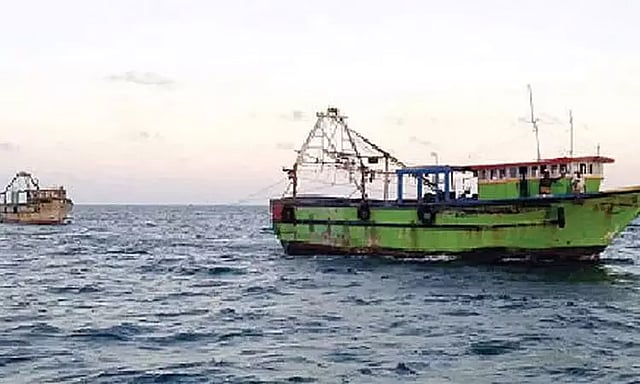 கச்சத்தீவு அருகே மீன்பிடித்த தமிழகத்தை சேர்ந்த 2 விசைப்படகு மற்றும் அதில் இருந்த 15 மீனவர்களை எல்லை தாண்டி மீன்பிடித்ததாக கூறி நேற்று முன்தினம் இலங்கை கடற்படை கைது செய்தது. கைது செய்யப்பட்ட மீனவர்களை தலைமன்னார் கடற்படை முகாமுக்கு அழைத்து சென்றனர்.