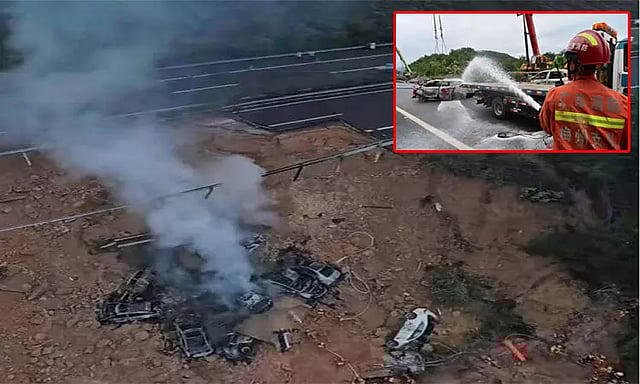 தெற்கு சீனாவின் குவாங்டாங் மாகாணத்தில் உள்ள அதிவேக நெடுஞ்சாலையில் இன்று அதிகாலை 2.10 மணியளவில் திடீரென பள்ளம் ஏற்பட்டது. இதையடுத்து அந்த சாலையில் சென்று கொண்டிருந்த 18 வாகனங்கள் அடுத்தடுத்து பள்ளத்தில் சிக்கின. இந்த விபத்தில் 19 பேர் உயிரிழந்ததாக உள்ளூர் அதிகாரிகள் தெரிவித்தனர்.
