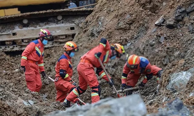 சீனாவின் ஹூபே மாகாணம் யுஷான் பகுதியில் நெடுஞ்சாலைக்கு சொந்தமான கட்டுமான பணிகள் நடைபெற்று வந்தது. இங்கு வழக்கம்போல் தொழிலாளர்கள் வேலை பார்த்து கொண்டிருந்தனர். அப்போது திடீரென அங்கு நிலச்சரிவு ஏற்பட்டது. இதில் அந்த கட்டிடம் இடிந்து விழுந்தது. இந்த நிலச்சரிவில் சிக்கி 2 பேர் உயிரிழந்தனர்.