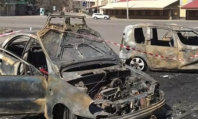 இந்த நிலையில் உக்ரைனின் கார்கீவ் பிராந்தியத்தில் உள்ள குபியன்ஸ்கி நகரை சேர்ந்த மக்கள் ரஷிய படைகளின் தாக்குதல்களில் இருந்து தப்பிக்க அண்டை நகரை நோக்கி கார்களில் அணி வகுத்து சென்று கொண்டிருந்தனர்.