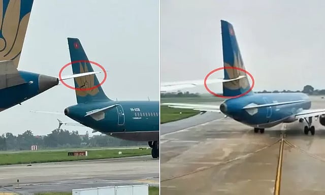 அப்போது ஹோ சி மின் நகரத்துக்கு புறப்பட்ட வியட்நாம் ஏர்லைன்ஸ் நிறுவனத்துக்குச் சொந்தமான விமானம் அங்கு நின்று கொண்டிருந்த ஏ-321 விமானம் மீது உரசியது. இதில் அந்த விமானத்தின் இறக்கை சேதமடைந்தது. இதனையடுத்து இரு விமானங்களிலும் இருந்த 386 பேரும் பத்திரமாக வெளியேற்றப்பட்டனர். இதனால் அங்கு பெரும் பரபரப்பு ஏற்பட்டது.