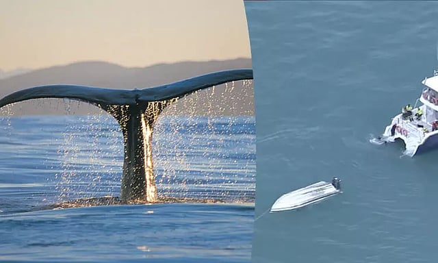 அப்போது, அந்த சிறிய ரக படகு மீது கடலில் நீந்திக்கொண்டிருந்த திமிங்கலம் மோதியுள்ளது. இதில், படகு நிலைகுலைந்து கடலில் மூழ்கி விபத்துக்குள்ளானது.