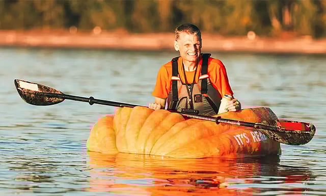 அமெரிக்காவின் ஆரேகான் மாகாணத்தின் ஹேப்பி வேலி பகுதியை சேர்ந்தவர் கேரி கிறிஸ்டன்சென். பெரிய பூசணிக்காய் ஒன்றை படகாக பயன்படுத்தி அதில் பயணம் செய்ய வேண்டியது என்பது இவருக்கு பல வருட கனவு. அதனை செய்து முடித்திருக்கிறார்.