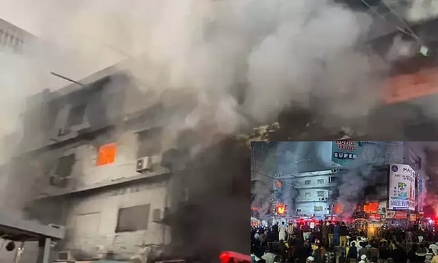 பாகிஸ்தான் நாட்டின் கராச்சியில் பிரபல வணிக வளாகம் உள்ளது. இந்த வணிக வளாகத்தில் நேற்று இரவு தீ விபத்து ஏற்பட்டது. வணிக வளாகத்தில் உள்ள கடையில் ஏற்பட்ட மின்கசிவு காரணமாக தீ விபத்து ஏற்பட்டது.
