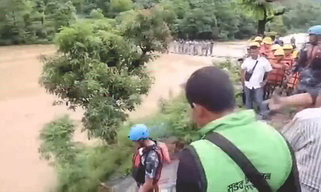 இந்தியாவின் அண்டை நாடுகளில் ஒன்றான நேபாளத்தில் கனமழை கொட்டி வருகிறது. நேபாளத்தில் பெய்து வரும் கனமழை காரணமாக, திரிசூலி ஆற்றில் வெள்ளம் பெருக்கெடுத்து ஓடுகிறது. இதன் காரணமாக, மதன் - ஆஷ்ரித் நெடுஞ்சாலையில் நிலச்சரிவு ஏற்பட்டு, இன்று அதிகாலை 3.30 மணியளவில், சாலையில் சென்றுகொண்டிருந்த இரண்டு பஸ்கள் ஆற்றில் அடித்துச் செல்லப்பட்டன.