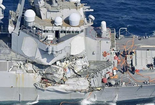 கப்பல்கள் மோதிய விபத்தில் அமெரிக்க போர்க் கப்பலில் இருந்த 7 வீரர்கள் மாயமாகிவிட்டனர். அவர்களின் நிலைமை என்ன வென்று தெரியவில்லை. இதற்கிடையே காயம் அடைந்த கமாண்டர் மற்றும் 2 பேர் ஹெலிகாப்டர் மூலம் ஆஸ்பத்திரிக்கு அனுப்பி வைக்கப்பட்டனர்.