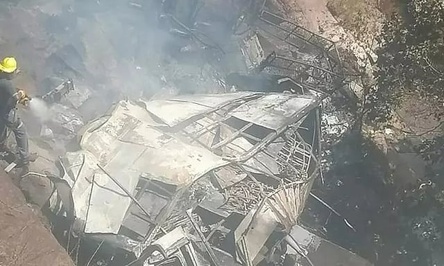 விபத்தில் பஸ் முற்றிலும் எரிந்து நாசமானதில், அதில் இருந்த பலரது உடல்கள் அடையாளம் காண முடியாத அளவிற்கு கருகிப்போனதாக தெரிவிக்கப்பட்டுள்ளது. பலரது உடல்கள் பஸ்சின் அடிப்புறத்தில் சிக்கியுள்ளன. அவற்றை மீட்கும் பணிகள் நடைபெற்று வருகின்றன. தரையில் மோதிய வேகத்தில் பஸ் முழுவதும் தீப்பிடித்து எரிந்தது.இதனிடையே, விபத்திற்கு தென்னாப்ரிக்கா அதிபர் சிரில் ரமபோசா இரங்கல் தெரிவித்துள்ளார்.