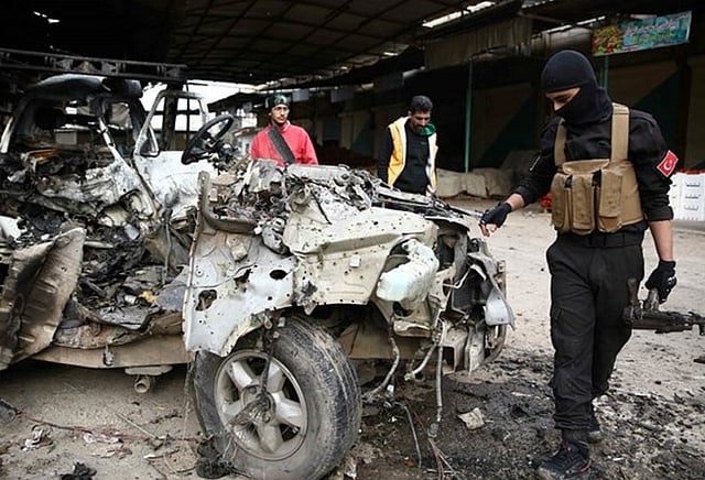 சிரியாவின் அலெப்போ மாகாணத்தில் உள்ள அப்ரின் மாவட்டம் கிளர்ச்சியாளர்களின் கட்டுப்பாட்டில் உள்ளது. இந்த நகரில் உள்ள புகழ்பெற்ற சந்தையில் நேற்று முன்தினம் மாலை ஏராளமான மக்கள் பொருட்களை வாங்கி கொண்டிருந்தனர்.