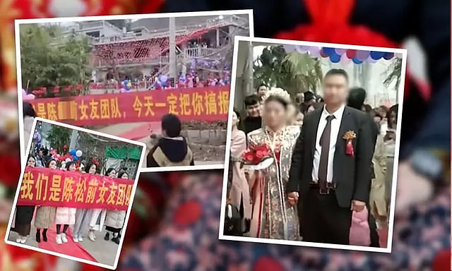 தென்மேற்கு சீனாவின் யுனான் மாகாணத்தைச் சேர்ந்தவர் சென். இவருக்கு கடந்த பிப்ரவரி 6ஆம் தேதி திருமணம் நடைபெற்றது. மணடபத்தில் கோலாகமாக நடந்து கொண்டு இருந்த திருமணத்தின் போது சில இளம் பெண்கள் கோஷம் எழுப்பி கொண்டு இருந்தனர். அவர்கள் கையில் பேனர் ஒன்றை வைத்து இருந்தனர். அவர்கள் அனைவரும் சென்னின் முன்னாள் காதலிகள் என்பது குறிப்பிடத்தக்கது.