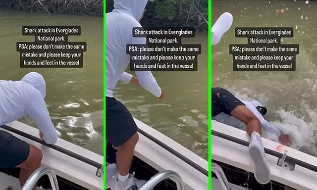 அமெரிக்காவின் புளோரிடா மாகாணத்தில் நேசனல் எவர்கிளேட்ஸ் என்ற பெயரில் பூங்கா ஒன்று உள்ளது. இதில், மீனவரான நபர் ஒருவர் தனது நண்பர் மைக்கேல் ரஸ்சோ என்பவருடன் ஆற்றில் படகு சவாரி செய்து உள்ளார்.