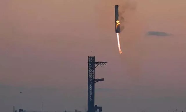 இறுதியில் ராக்கெட் செலுத்தும் கோபுரத்தில் பொருத்தப்பட்டிருந்த உலோக கரங்கள் பூஸ்டர் பகுதியை பிடித்தது. அதாவது, புவி ஈர்ப்பு விசையை மீறி மீண்டும் ஏவுதளத்திற்கே ராக்கெட் திரும்பியது. இதன் மூலம் உலகில் முதல் முறையாக ராக்கெட்டின் பூஸ்டர் பகுதியை வெற்றிகரமாக தரையிறக்கி ஸ்பேக்ஸ் நிறுவனம் சாதனை படைத்துள்ளது. இந்த சாதனையை ஸ்பேஸ் எக்ஸ் நிறுவனத்தினர் கொண்டாடி மகிழ்ந்தனர். எலான் மஸ்க்கும் இதன் வீடியோ காட்சிகளை தனது எக்ஸ் தளத்தில் பகிர்ந்துள்ளார்.