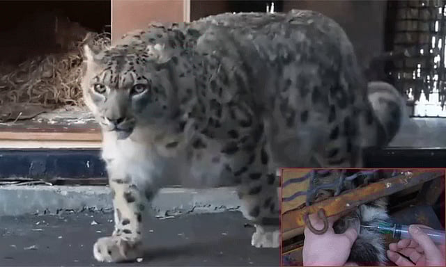 பனிச்சிறுத்தைகள் இயற்கையிலேயே மிகவும் கூச்ச சுபாவம் கொண்டவை மற்றும் மனிதர்களை அவ்வளவு எளிதில் நெருங்க விடாது. அத்தகைய விலங்கு, தனது வாலை பிடித்து ஊசி போடும் அளவுக்கு மருத்துவர்களை நம்புவது என்பது அந்த பயிற்சியாளர்களின் நீண்ட கால உழைப்பை காட்டுகிறது.
