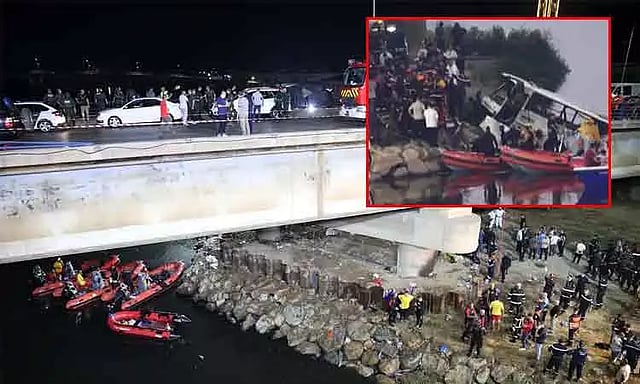 அல்ஜீரியா நாட்டின் கிழக்கே அமைந்த அல்ஜீர்ஸ் நகரில் முகமதியா மாவட்டத்தில் பஸ் ஒன்று பாலத்தின் மீது சென்று கொண்டிருந்தது. அப்போது, அந்த பஸ் திடீரென ஆற்றில் கவிழ்ந்தது.