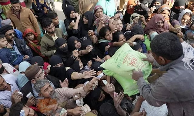 கோதுமை மாவுக்கு (அட்டா) கடும் தட்டுப்பாடு காரணமாக பாகிஸ்தான் தற்போது நெருக்கடியை சந்தித்து வருகிறது.இதன் காரணமாக நாட்டின் பல்வேறு பகுதிகளில் உள்ள பொதுமக்களுக்கு குறைந்த விலையில் மாவு பொட்டலங்களை அரசாங்கம் வழங்கி வருகின்றது.மாவுத் தட்டுப்பாடு கடுமையாக இருப்பதால், குறைந்த விலையில் மாவு வாங்க முயன்ற 4 பேர் கூட்ட நெரிசலில் சிக்கி உயிரிழந்துள்ளனர்.