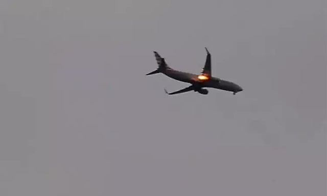விமானம் புறப்பட்ட சில நிமிடங்களில் நடுவானில் விமானத்தின் என்ஜினில் இருந்து பயங்கர தீ பற்றியது. நடுவானில் விமானத்தின் என்ஜின் மீது பறவை மோதியதால் என்ஜினில் தீ பற்றியுள்ளது.