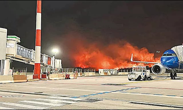 இதேபோல் இத்தாலியிலும் அதிக வெப்ப அலை காரணமாக காட்டுத்தீ கட்டுக்கடங்காமல் எரிந்து வருவதால் புகைமண்டலம் போல காட்சி அளிக்கிறது. எனவே அங்குள்ள பலேர்மோ விமான நிலையம் தற்காலிகமாக மூடப்பட்டது. இதனால் விமான பயணங்கள் அங்கு ரத்து செய்யப்பட்டு பொதுமக்கள் அவதியடைந்தனர்.